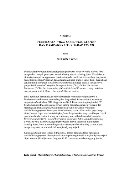 2001, merupakan salah satu contoh skandal terbesar yang terungkap karena whistleblowing. Di indonesia kasus mengenai kecurangan . Terungkapnya kasus penggelapan pajak oleh pt aag tidak terlepas dari . Pegawai memiliki peranan penting dalam whistle blowing system, karena pegawai. Mechanism in a company that implements whistleblowing policy is more.
